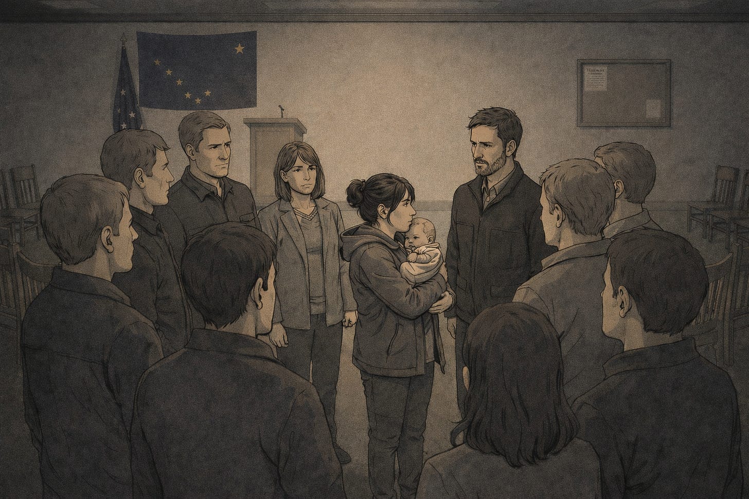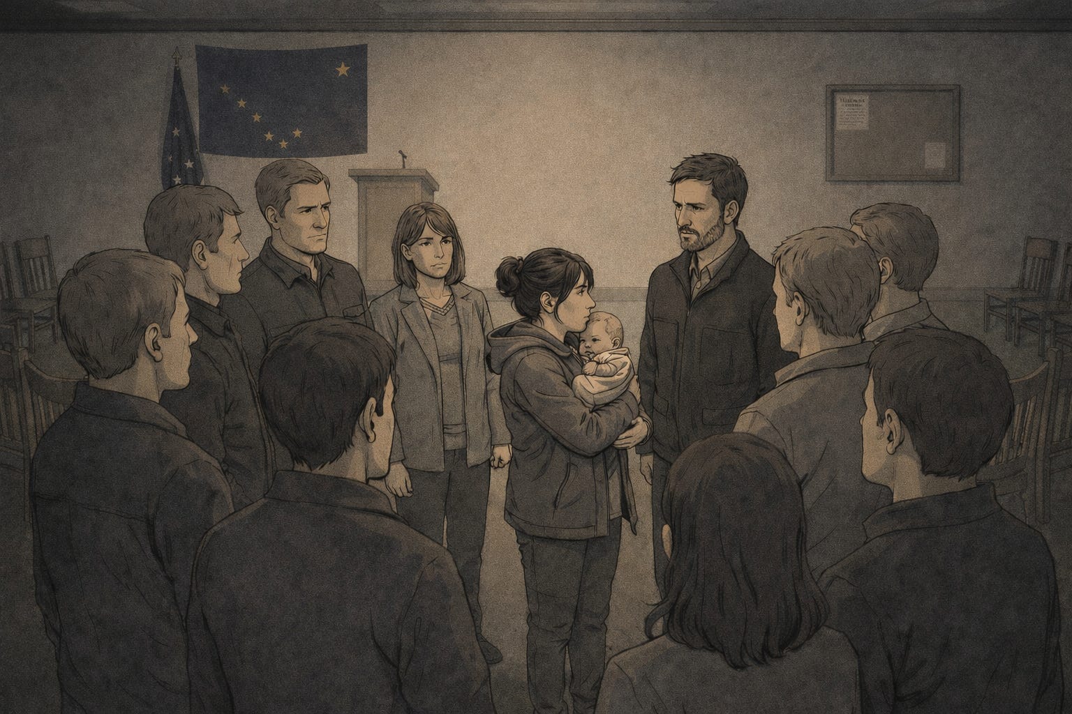 She glanced around the room. There was a flag on the wall. Alaska. Nothing else.